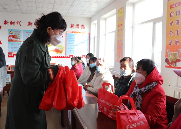 春节临近,为深入贯彻落实党的二十大精神,进一步做好农村牧区疫情防控工作,筑牢疫情防控安全堡垒,更好地为困境妇女儿童提供暖心服务,1月17日下午,巴彦淖尔市妇联在临河区干召庙镇民主村举行“爱心连着你我他,温暖送到千万家”防疫健康包发放活动,让广大农村牧区妇女感受到冬日的浓浓暖意。市妇联党组书记、主席王慧荣出席发放仪式并讲话,市妇联党组成员、副主席王慧娟,临河区妇联代表和部分农村妇女群众参加发放活动。