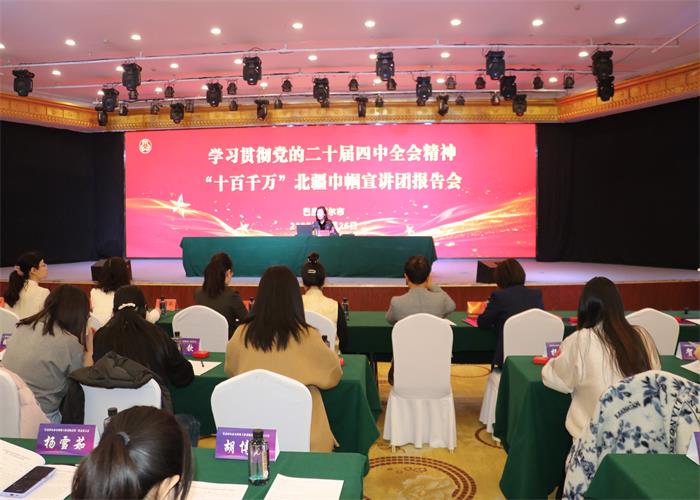 初冬时节,学习热潮涌动。11月26日,学习贯彻党的二十届四中全会精神“十百千万”巾帼宣讲团报告会在巴彦淖尔饭店举行,自治区妇联党组成员、副主席仲玉霞作专题宣讲,巴彦淖尔市妇联党组书记、主席王慧荣主持会议,全市各级女科技工作者、市妇联全体干部职工等190余人聆听了报告。